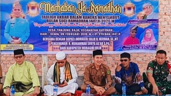 AskaraNews.com, Sungai Guntung Inhil-Pemerintah Desa Tanjung Raja, Kecamatan Kateman, Kabupaten Indragiri Hilir, menggelar kegiatan Tabligh Akbar dalam rangka menyambut Bulan Suci Ramadan 1447 Hijriah/2026 Masehi, Senin (9/2/2026). Kegiatan yang dipusatkan di Desa Tanjung Raja tersebut berlangsung khidmat dan dihadiri ratusan warga serta unsur pemerintahan dan aparat setempat.