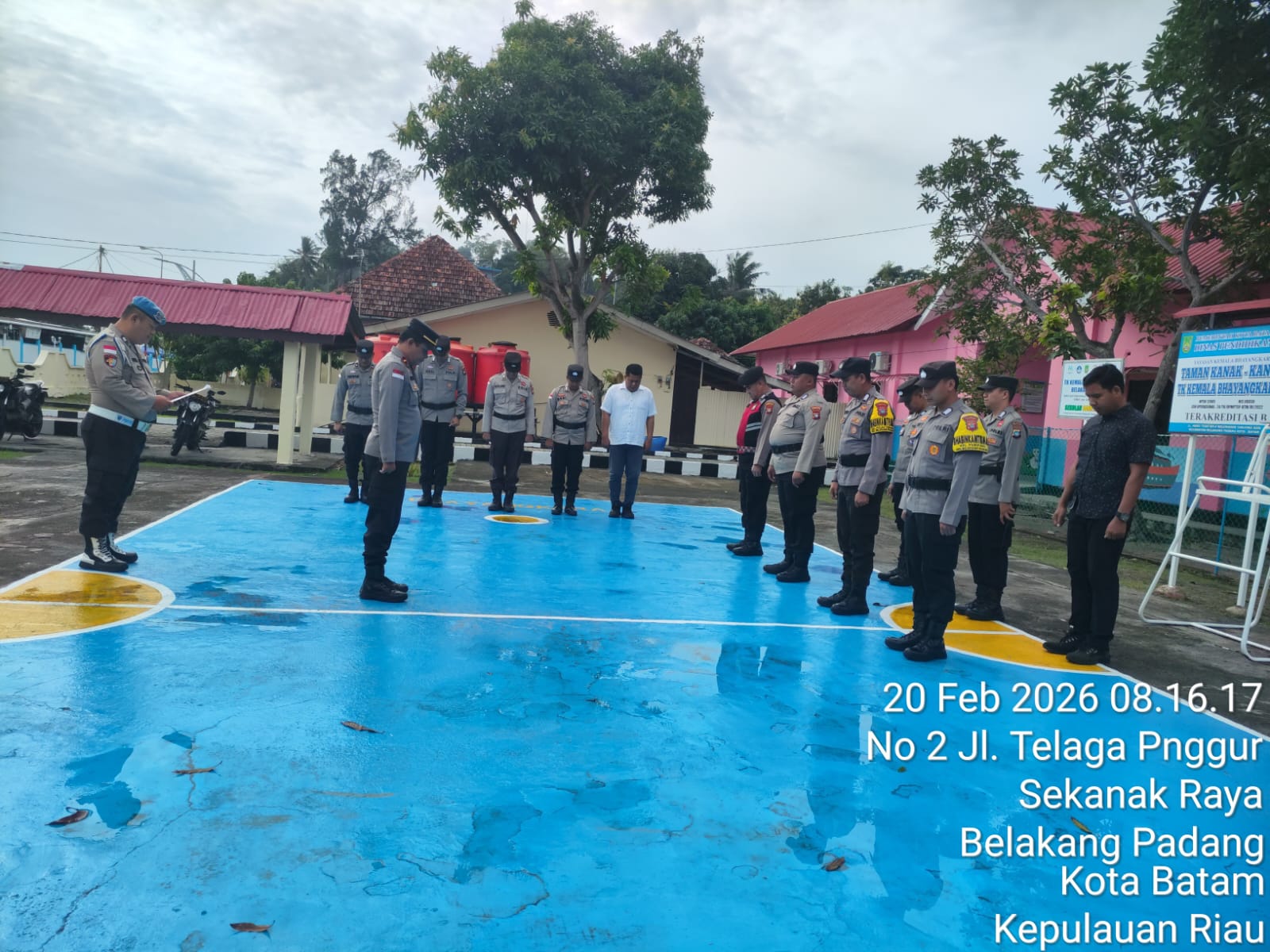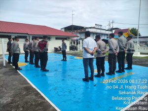 AskaraNews.com,BATAM – Polsek Belakang Padang menggelar apel pagi rutin personel di lapangan Mapolsek Belakang Padang, Kota Batam, pada Jumat (20/02/2026) pagi. Dipimpin oleh Wakapolsek Belakang Padang, IPDA Denny Aryanto, kegiatan ini bertujuan untuk memperkuat kedisiplinan dan menyampaikan arahan strategis pimpinan Polri kepada seluruh jajaran.