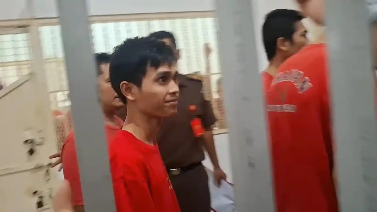 Saat hendak memasuki ruang sidang, pandangan pria dengan kaos tahanan nomor 58 itu terhenti.