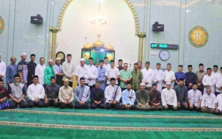 AskaraNews.com,Tanjungpinang-Malam ke-9 Ramadan, Wali Kota Tanjungpinang Lis Darmansyah dan Wakil Wali Kota Raja Ariza beserta rombongan melaksanakan Safari Ramadan Pemerintah Kota Tanjungpinang mengunjungi dan salat tarawih di Masjid Jami’ Al Jannatul Ma’wa, Jalan Soekarno Hatta Kelurahan Tanjungpinang Barat, Kamis (26/2/2026).