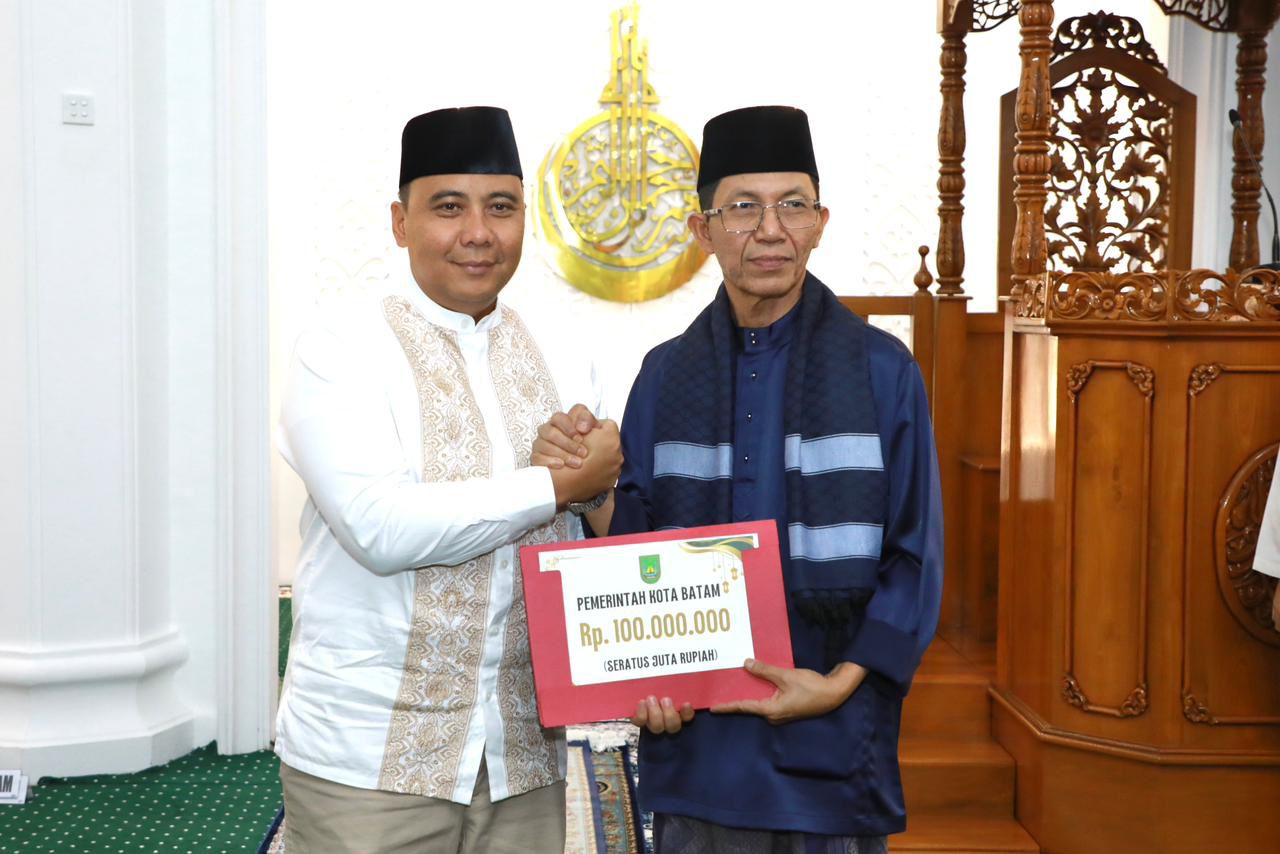 AskaraNews.com,Batam-Wali Kota Batam, Amsakar Achmad, menyerahkan bantuan untuk masjid serta mengajak masyarakat memanfaatkan sisa Ramadan untuk meningkatkan ibadah dan meraih keberkahan malam Lailatulaadar.