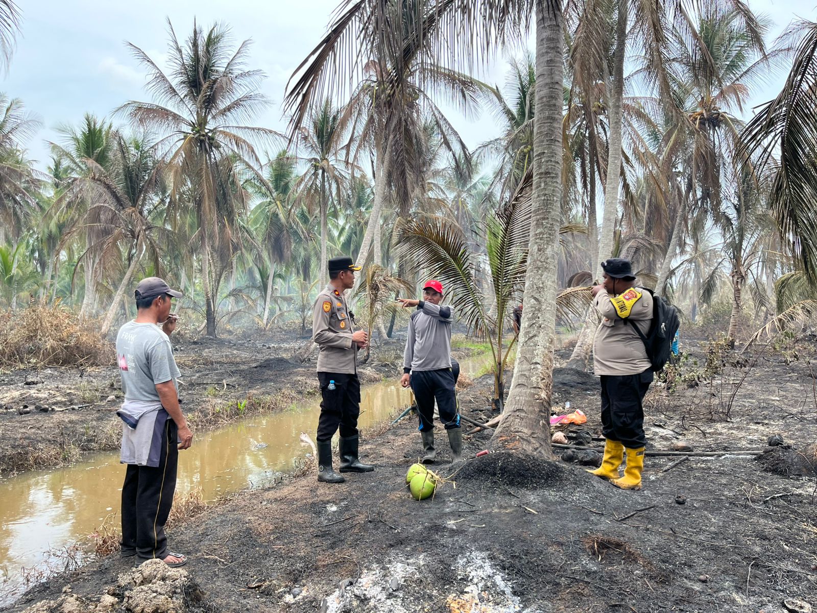 Selain melakukan pendinginan, Kapolsek juga meninjau kondisi lahan pascakebakaran di kedua wilayah guna memastikan situasi benar-benar aman dan terkendali. Pemantauan terus dilakukan di sejumlah titik rawan sebagai langkah antisipasi terjadinya kebakaran susulan.