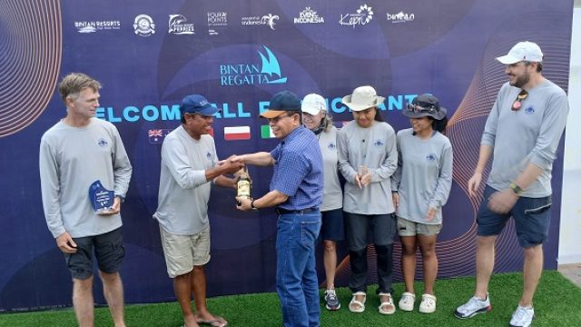 Jumat (3/4/2026), tujuh kapal layar mengikuti lomba passage race Bintan Regatta 2026. Peserta dilepas dari Singapura pukul 09.00 waktu setempat atau sekitar pukul 08.00 WIB. Kapal layar Dot Dot Dot dengan kapten (skipper) David Steel dari Amerika Serikat (USA) finish pertama di Pelabuhan Internasional Marina Bintan Resorts, dengan jarak tempuh sekitar 7 jam. David Steel bersama istrinya dan seorang ABK asal Singapura menerima apresiasi untuk kelas Multihull Division dari panitia penyelenggara.