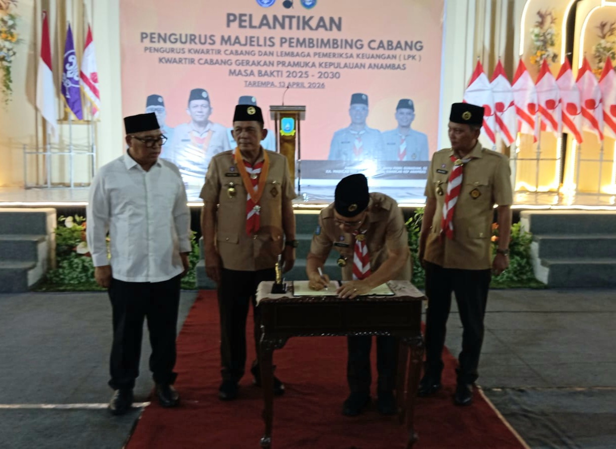 Dalam pelantikan tersebut, Bupati Kepulauan Anambas, Aneng, dipercaya sebagai Kamabicab, sementara Wakil Bupati, Raja Bayu Febri Gunadian, dilantik sebagai Ketua Kwarcab. Prosesi berlangsung khidmat di Gedung Balai Pertemuan Masyarakat Siantan (BPMS) Tarempa, Senin 13 April 2026.